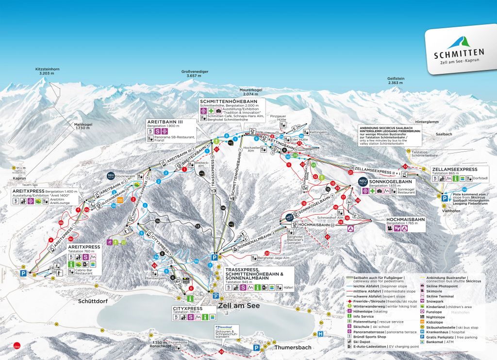 Die Wahl fiel auf das Skigebiet Zell am See, genauer gesagt auf die Schmittenhöhe, da ich die Region bereits im Sommer mit meinem Freund erkundet hatte. Dieses Skigebiet ist für alle Niveaus von Skifahrern geeignet (blau – Anfänger: 30 km Pisten, rot – Fortgeschrittene: 28 km Pisten, und schwarz – Profis: 19 km Pisten). Der Tagespreis von 65 € für Erwachsene schmerzt etwas im Portemonnaie, aber dafür hat man nicht nur Zugang zur Schmittenhöhe, sondern auch zu zwei weiteren Gebieten (Kaprun und Maiskogel), wodurch sich die Zahl der verfügbaren Pistenkilometer erhöht. Die drei Skigebiete Kaprun, Maiskogel und Schmittenhöhe können über Skilifte oder Busse untereinander erreicht werden. Wir haben nicht direkt in Zell am See übernachtet, sondern etwas weiter entfernt im Hotel LukasMayr in Bruck an der Großglocknerstraße. Das Hotel LukasMayr ist ein 3-Sterne-Hotel mit Halbpension, was nach einem langen Tag in den Bergen sehr zu empfehlen ist. So brauchten wir uns weder um das Frühstück noch um das Abendessen zu kümmern und konnten uns nach einem langen Tag am Buffet bedienen. Nur die Getränke beim Abendessen mussten extra bezahlt werden. Wir haben unseren Aufenthalt dort sehr genossen, und für den Preis war das Angebot wirklich sehr gut.