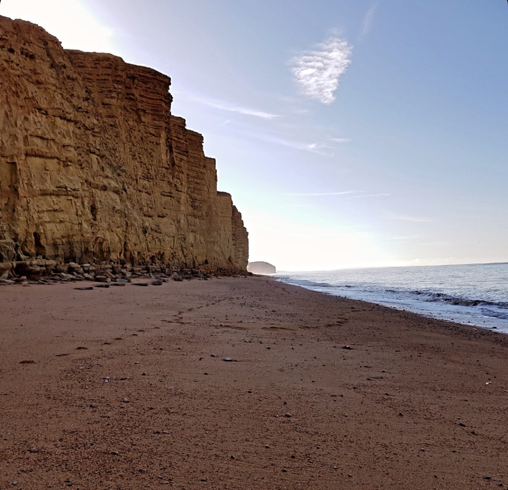 Unsere erste Station im Südwesten Englands war Eype in Dorset, wo mein Freund als Kind viele schöne Stunden verbracht hat, darunter beim Steinehüpfen. Das Wetter war ideal – strahlender Sonnenschein und angenehme Temperaturen, was man im englischen Sommer nicht immer erwarten kann. Wir saßen im Sand und genossen einen atemberaubenden Sonnenuntergang, der die Klippen in goldenes Licht tauchte. Am nächsten Morgen machten wir uns noch vor dem Frühstück auf den Weg, um einen kleinen Abschnitt des South West Coast Path zu erkunden. Erneut hatten wir Glück mit dem Wetter, als wir von Eype nach West Bay wanderten. Der entspannende Weg entlang der grünen Klippen mit Blick auf die Küste war ein Genuss. Da wir vorhatten, nach unserem Surfkurs weitere Teile des South West Coast Path zu wandern, stimmte uns dieser erste Abschnitt optimistisch für die kommenden Tage – wie sehr wir uns doch täuschen sollten.