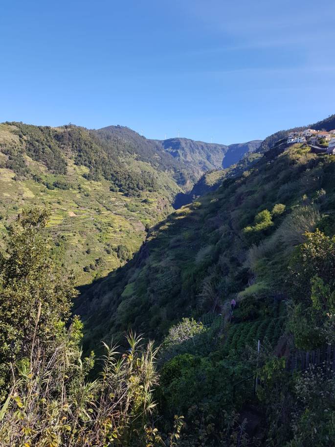 Der Rundweg erstreckt sich entlang der üppigen Natur Madeiras und der Ausblick ist wirklich fantastisch. Das erste Mal mit einer Taschenlampe durch einen der Tunnel zu gehen war wirklich ein Erlebnis. Mein persönliches Highlight war der Wasserfall, bei dem ich auf jeden Fall nasse Füße bekommen habe. Aber wann kann man schonmal sagen, dass man hinter einem Wasserfall gestanden hat?! Auch wenn ich hier den Rundweg über den Levada do Moinho angegeben habe, ist dies nicht der Weg den meine Begleiterin und ich bei unserem Besuch eingeschlagen haben. Anstatt die Metalltreppe hinabzusteigen, folgten wir dem Weg weiter und gelangten schließlich zu einem Fluss, den wir problemlos überqueren konnten. Entschlossen, einen Rundweg zu machen, der scheinbar auf der anderen Seite des Flusses verlief, setzten wir unseren Weg fort. Nach einer Weile überquerten wir eine Brücke und konnten die Kirche am Fuße des Berges sehen. Es schien jedoch keinen ausgewiesenen Wanderweg zu geben, und so irrten wir durch eine Bananenplantage und erkletterten schließlich den gesamten Berg zur Kirche entlang eines steilen Trampelpfades. Wir müssen ziemlich amüsant ausgesehen haben, als wir, verschwitzt und mit hochroten Gesichtern, am kleinen Kiosk neben der Kirche etwas zu trinken bestellten, während die anderen Besucher noch frisch und ausgeruht wirkten. Nun ja, wir haben unsere Lektion gelernt, und das nächste Mal werden wir besser recherchieren und einen Artikel über die Wanderung lesen (wie diesen hier zum Beispiel).