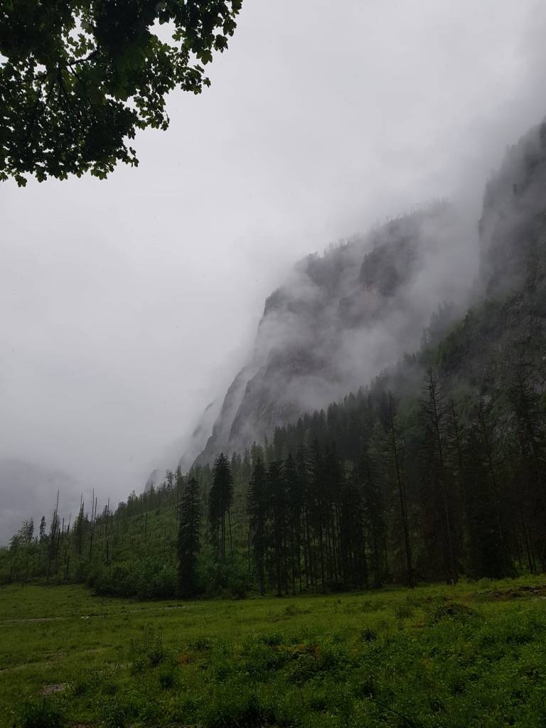Auf meinem Rückweg habe ich noch einen Zwischenstopp in St. Bartholomä gemacht. Wahrzeichen ist die Kapelle mit dem imposanten Watzmann dahinter, dessen Panorama man auf jeder Postkarte findet. Der Herr Watzmann war leider in der dichten Wolkendecke dieses mal nicht zu sehen.