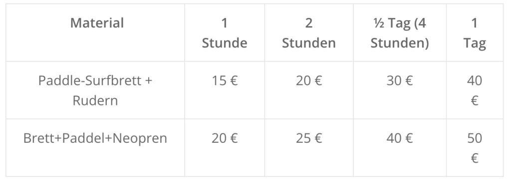 Preise Materialverleih Prado Surfschule A Lanzada