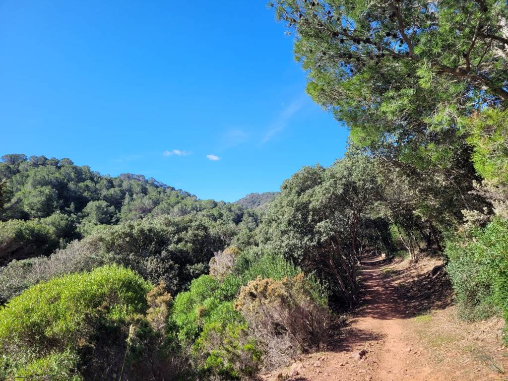 Auf dem Rückweg haben wir schließlich doch noch die Wanderwege durch die malerische Waldlandschaft, gesäumt von Eukalyptus-Bäumen, entdeckt. Der Weg war dadurch nicht nur deutlich kürzer, sondern auch viel angenehmer, und meine Laune verbesserte sich spürbar. Daher mein Tipp: Wenn man vom Praia da Lanzada kommt, die Treppe zur Straße hinaufsteigt und am kleinen Parkplatz vorbeigeht, sieht man auf der rechten Seite ein Schild mit einer Paintball-Werbung. Folgt man diesem Weg, gelangt man direkt auf die Waldwege, die in Richtung des Aussichtspunkts führen. Es gibt dort viele weitere Wege, die entweder nur spärlich oder gar nicht ausgeschildert sind – ideal, um auf eigene Faust Entdecker zu werden.