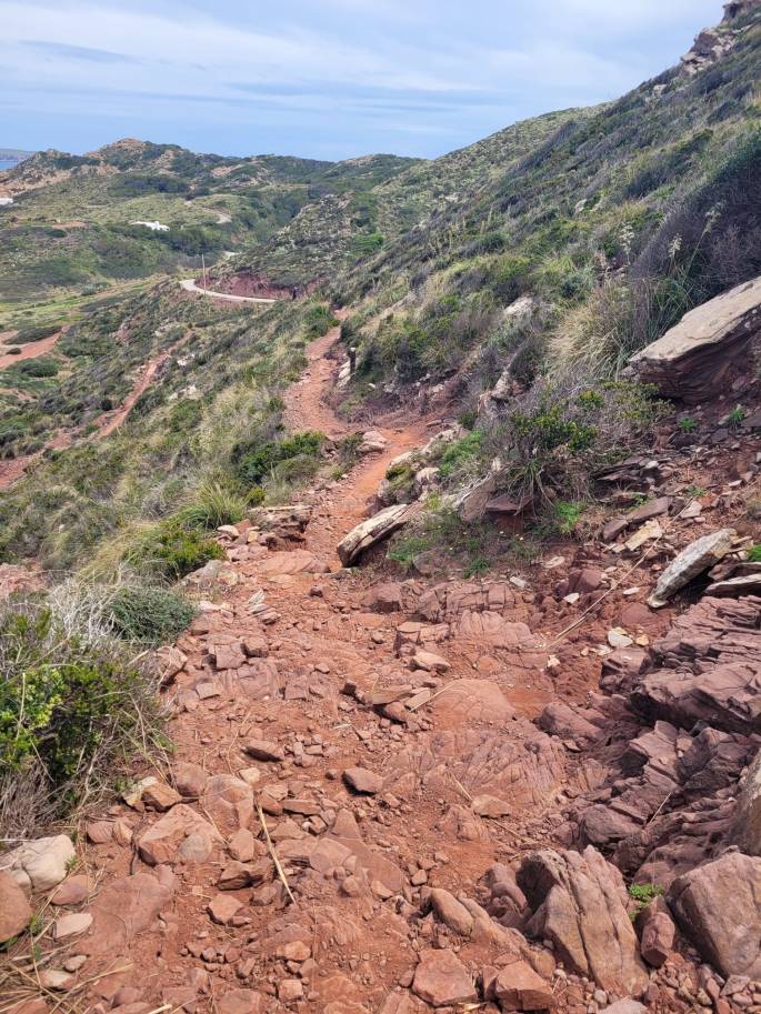 Entlang der Klippen ging es ständig bergauf und bergab, mit Abschnitten, in denen wir über Felsen klettern oder uns eng an die schützende Felswand schmiegen mussten, während die Klippen zu unserer Rechten etliche Meter abfielen. Wir hatten unsere Fähigkeiten bei weitem überschätzt. Als wir die nächste größere Stadt erreichten, beschlossen wir, den Bus zu nehmen, um näher an den Campingplatz zu kommen, auf dem wir die Nacht verbringen wollten. Kaum waren wir aus dem Bus ausgestiegen, begann es zu regnen, und zu unserer Erschöpfung kamen noch nasse Füße. Wir entschieden uns, den öffentlichen Fußweg zu nehmen, um uns nicht den rasenden Autos auf der Straße auszusetzen. Glücklicherweise erreichten wir schließlich den Campingplatz, bauten unser Zelt auf und fielen um 19 Uhr völlig erschöpft in unsere Schlafsäcke.